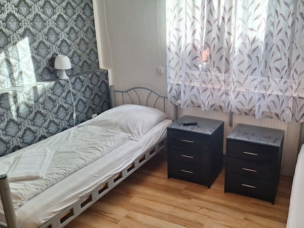 This cozy apartment offers three single beds and a small, well-equipped kitchen with a stove, refrigerator, microwave, kettle and dishes. It also has a private bathroom with a shower and toilet to make your stay as pleasant as possible. Satellite TV is available for entertainment. Ideal for a relaxing vacation or a longer stay!